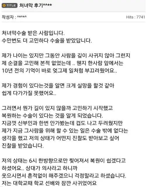 ㅅㅂ 말이되냐? 처녀가 아닌데 수술해서 처녀인척을 한다는게 ㅅㅂ 있었던일을 왜 없었던 일인것마냥 남을 속이는거냐?