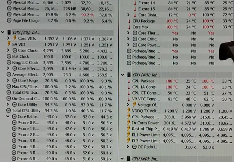 12900k 모라인데 310w쳐먹어서 100 달성ㅋㅋ 어질어질하네