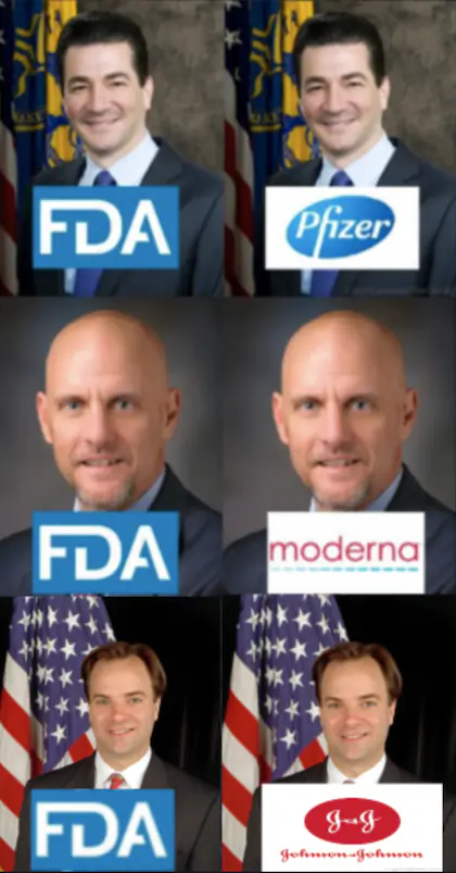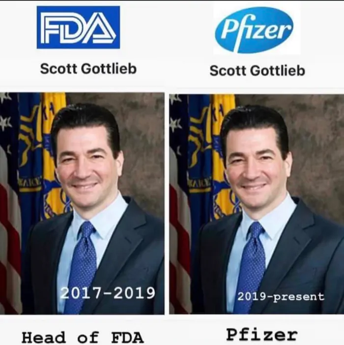 전 FDA 청장 스콧 고트 , 회전식 문의 궁극적 인 의인화 메커니즘은 화이자의 이사회에 앉아있다. 화이자의 후원을 받는 CNBC 게스트도 자주 방문하는 화이자 주식 수천 주를 보유하고 있으며 매년 6자리의 보수를 받습니다. Gottlieb은 수많은 제약 및 의료 회사의 이사회 임명을 받고 이를 통해 수백만 달러를 벌고 있습니다.