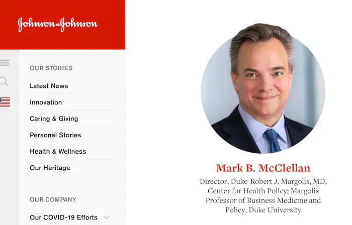 Mark McClellan 은 2002년부터 2004년까지 FDA 국장을 역임했습니다(다른 고위 정부 직책에서 근무). 그는 2013년부터 제약 대기업 Johnson & Johnson의 이사회 자리를 유지하고 있습니다. McClellan은 회사의 수천 주를 소유하고 있으며 연간 약 300,000달러를 받습니다.