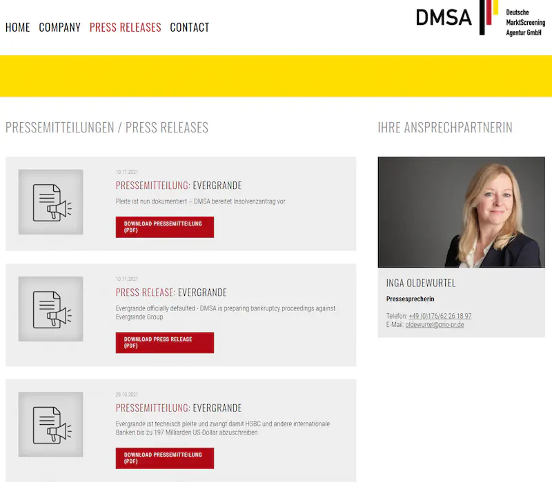 채권자는 Evergrande에 대한 파산 절차 준비 China Evergrande Group은 오늘 다시 국제 투자자들에 대한 이자 지급을 불이행했습니다. 독일 시장 심사 기관인 DMSA 자체가 이 채권에 투자되었으며 오늘 유