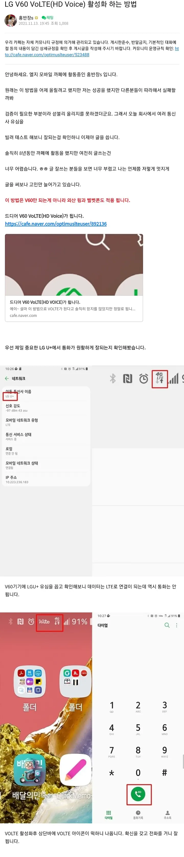 저도 조만간 실사용 목적의 V60을 구매할 예정인데 VoLTE 뚫렸으니 더이상 망설일 필요가 없어진것 같습니다.