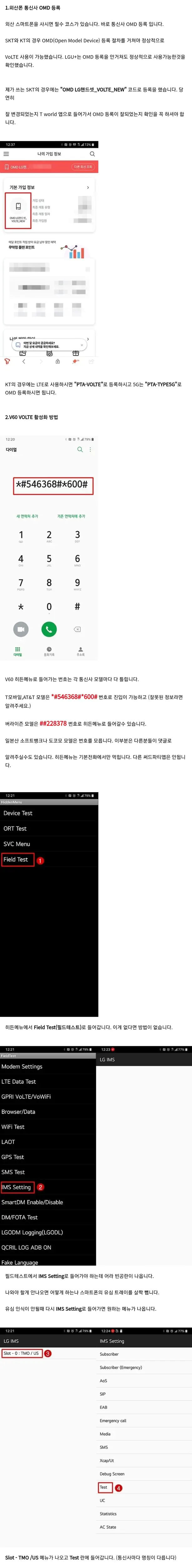 그러면 t모바일이나 at&t버전 v60을 사서 volte 활성화를 시킨 다음 우리나라에서 어떻게 사용하나요?