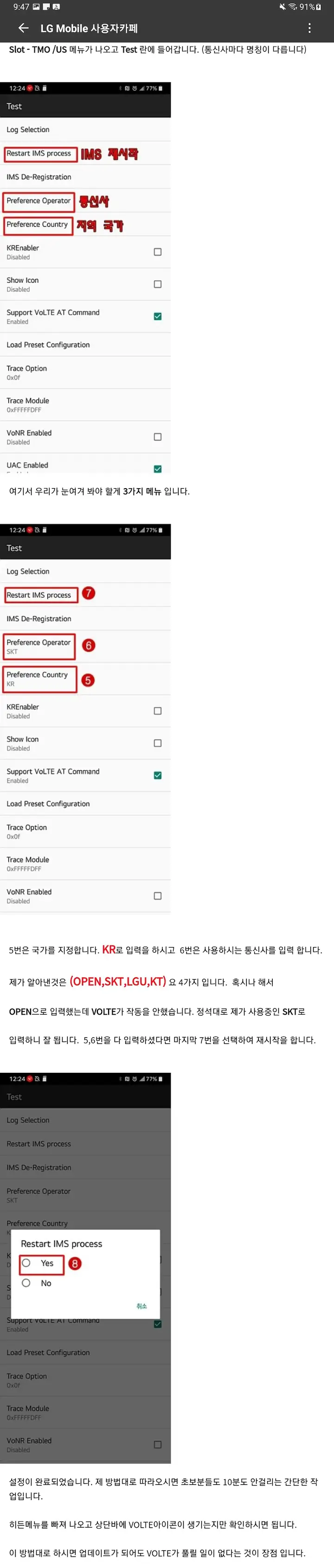 수많은 사람들이 VoLTE를 파훼하려고 부트로더도 까서 분해해보고 했는데 정작 생각지도 못했던 곳에 숨어있었으며, 히든메뉴에서 설정만 바꿔주면 되는것이었습니다.