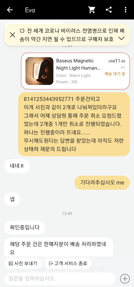 알리 이거 앱자체도 주문은 그냥 일사천리고 취소나 환불은 꽁꽁 숨박꼭질임