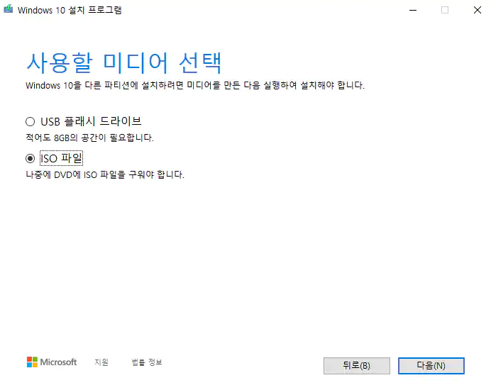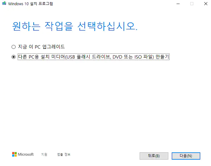 다른 pc용 설치 미디어 만들기 선택 후 다음