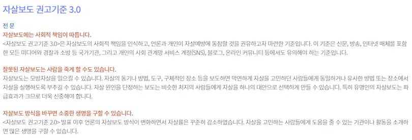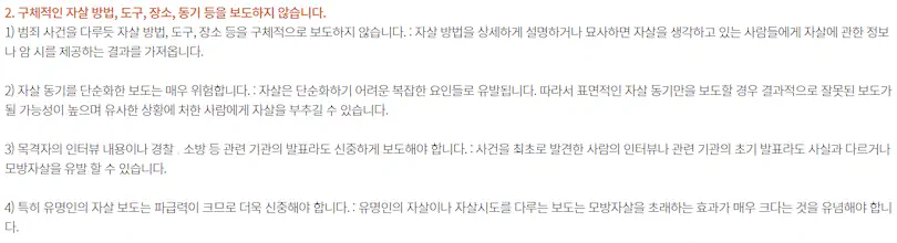 이외에도 자살 관련 사진 및 영상 금지 자살 합리화 금지 등등이 있음