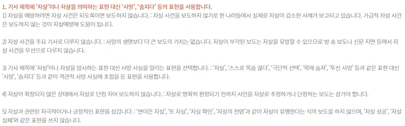 즉 제목만 봐서는 자살인지 모르도록 보도해야 하는 조건임