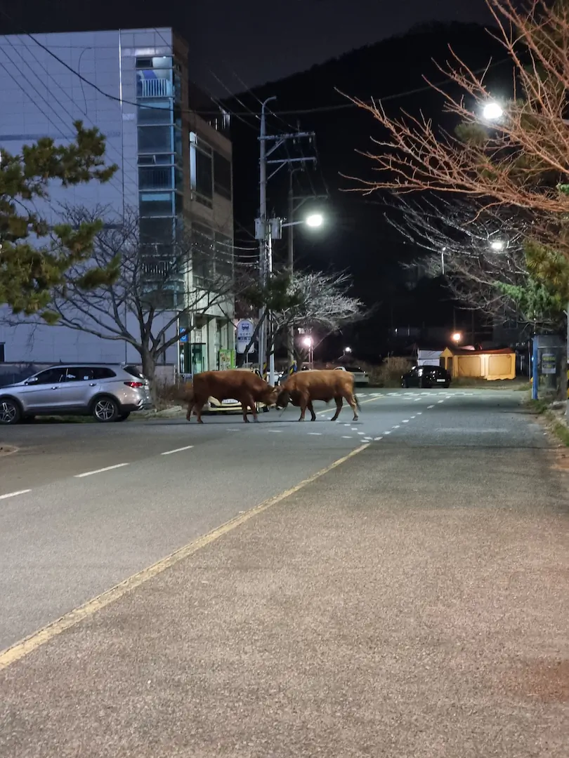 송아지도 아니고 황소가 왜 길바닥에 있어....