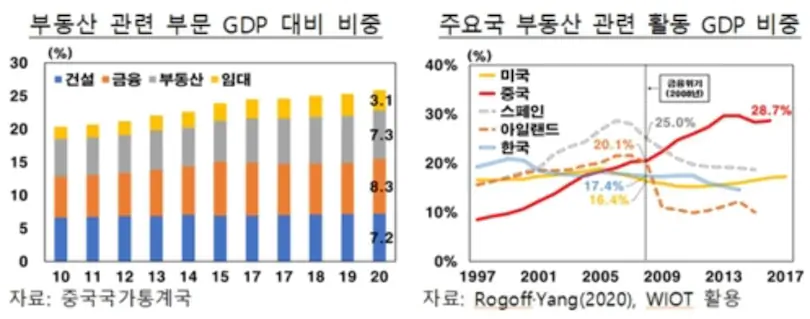 중국이 다른 나라보다 부동산 비중이 28.7프로 10프로 이상 높네