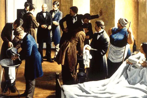당시에 의사들은 수술중 옷이 튄 피는 훈장이었고 손씻기는 커녕 의술도구 소독도 제대로 하지않았다.