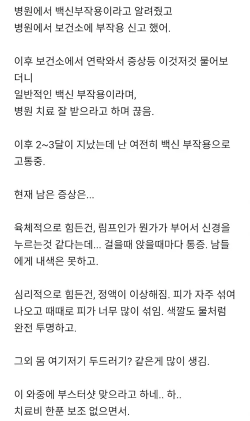 여사친이 백신 부작용인데 병원에서 해주는게 뭔지 아냐?