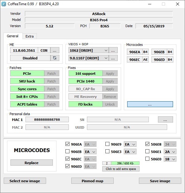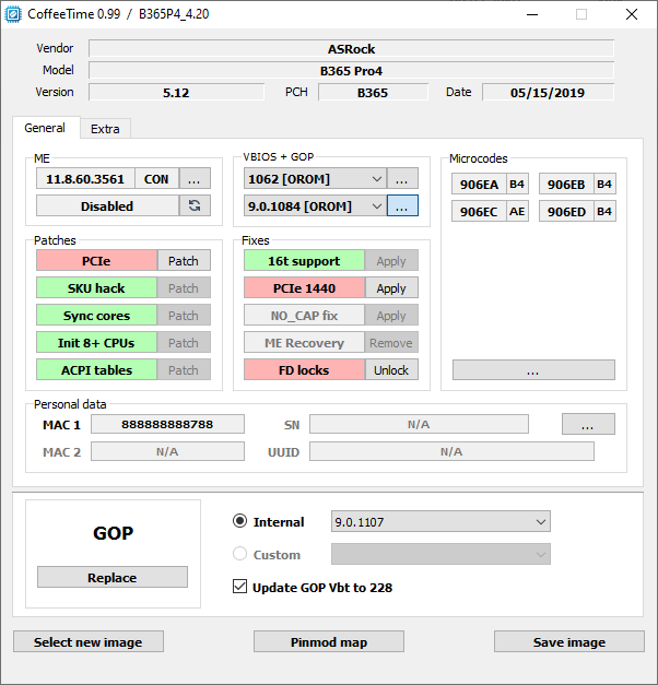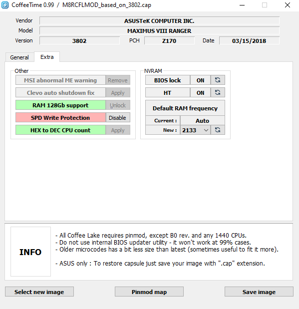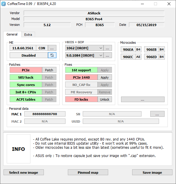 중요 : PCI-E 슬롯 에는 패치가 필요하다. 패치를 사용할 수 없는 경우 CoffeeTime이 현재 BIOS에서 패치를 제대로 적용할 수 없음을 의미한다. 이 경우 마더보드 BIOS의 이전 버전을 시도해야 한다.