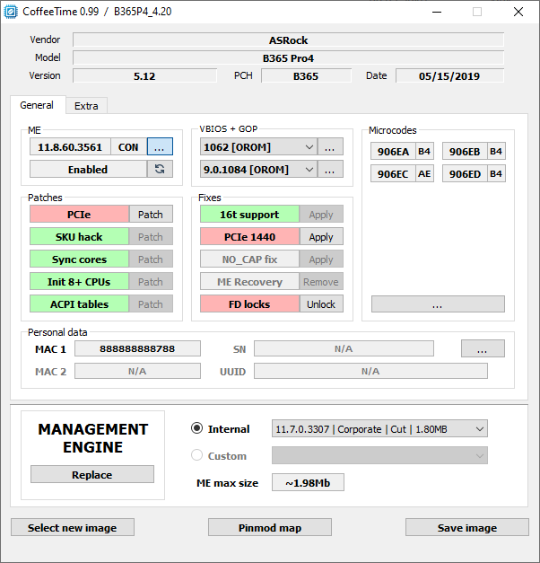Asus 메인보드에서는 ME 버전의 후속 롤백 중에 벽돌을 얻을 가능성이 있으므로 11.7.0.3307을 권장한다.