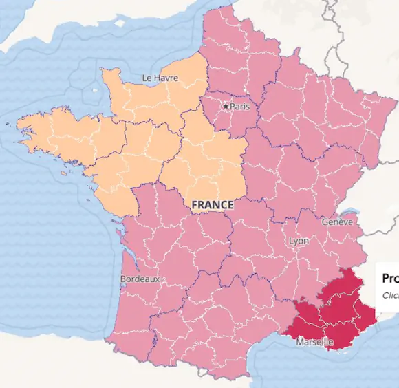 변이 퍼지는 프랑스 남동쪽이 치사율 치명률이 높다