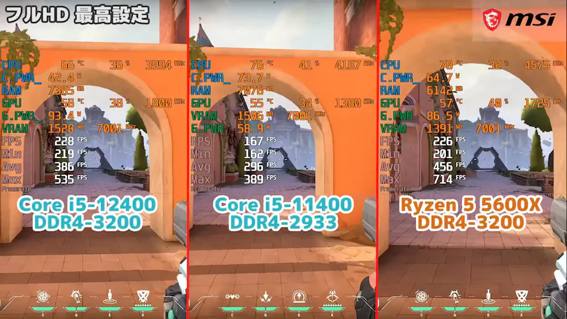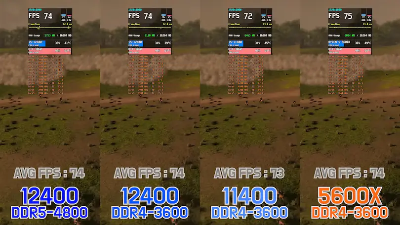 역시나 5600x가 12400보다 프레임이 압도적으로 더 잘나온다