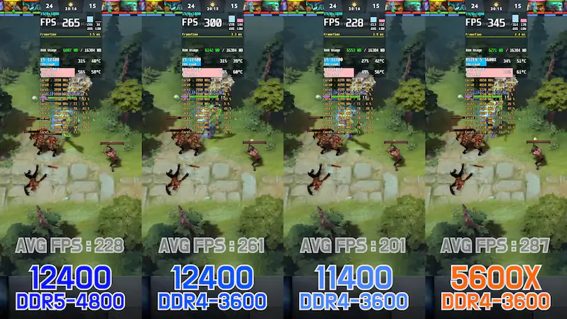 도타2도 5600x가 12400보다 프레임이 더 잘나온다