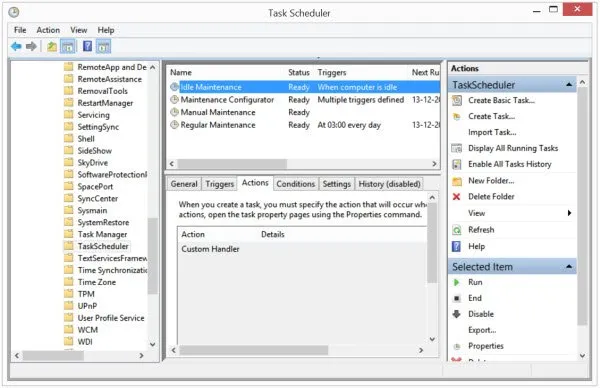 자동 유지 관리를 비활성화하려면 작업 스케줄러 > 작업 스케줄러 라이브러리 > Microsoft > Windows > TaskScheduler를 열어야 합니다.