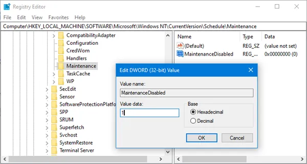 레지스트리를 사용하여 Windows 10에서 자동 유지 관리를 비활성화할 수도 있습니다.