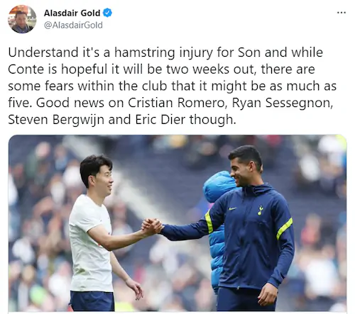 손흥민 5주짜리 햄스트링 부상이네 월드컵 예선도 못뛰겟네