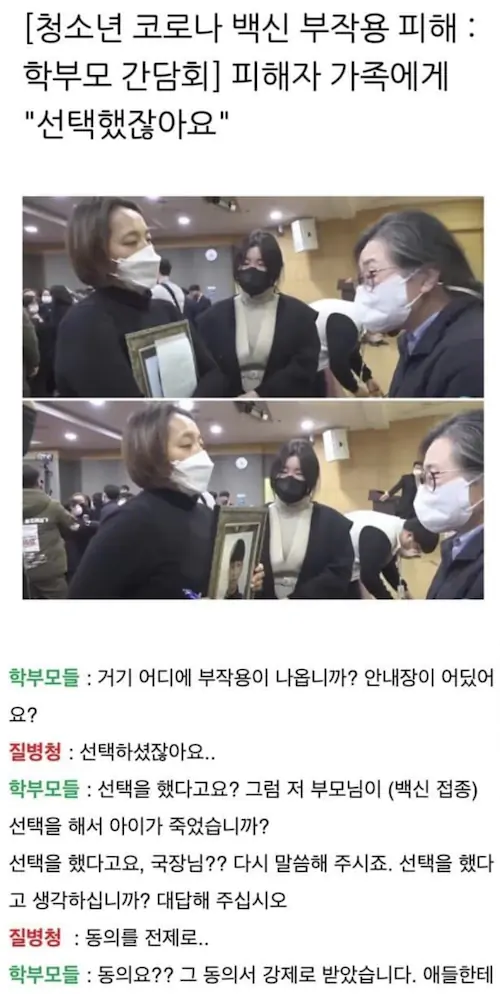 [청소년 코로나 백신 부작용 피해 : 학부모 간담회] 피해자 가족에게 "선택했잖아요"