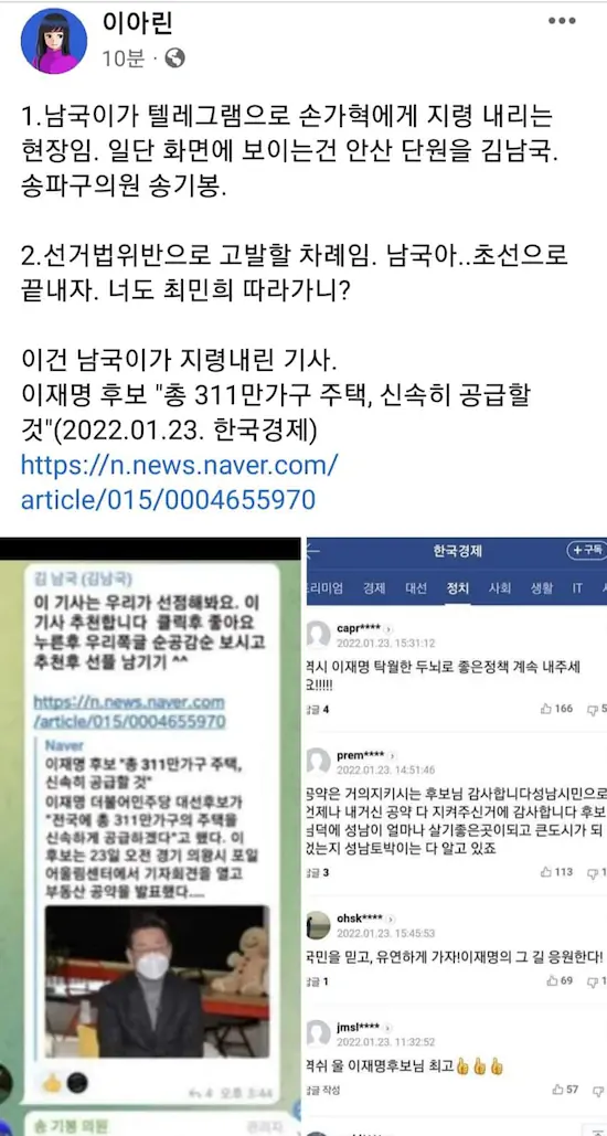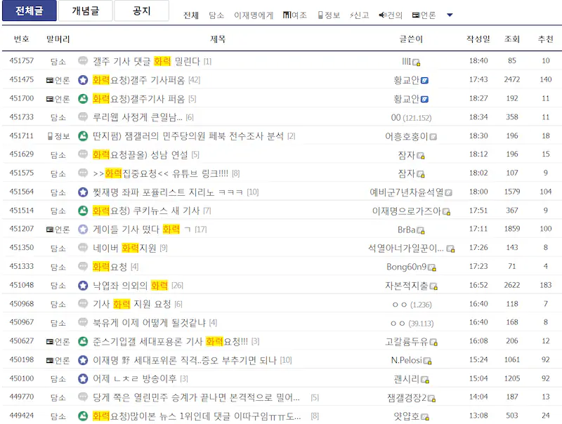 이재명갤 댓글 부대 지령