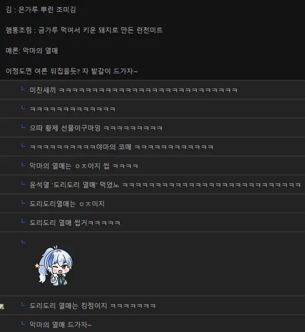 농담삼아 낄낄거리며 얘기하다가 갑자기 진지하게 열받네. 저거 진짜 아니겠지? 런천미트는 진짜 좀 아니잖아. 아니지?