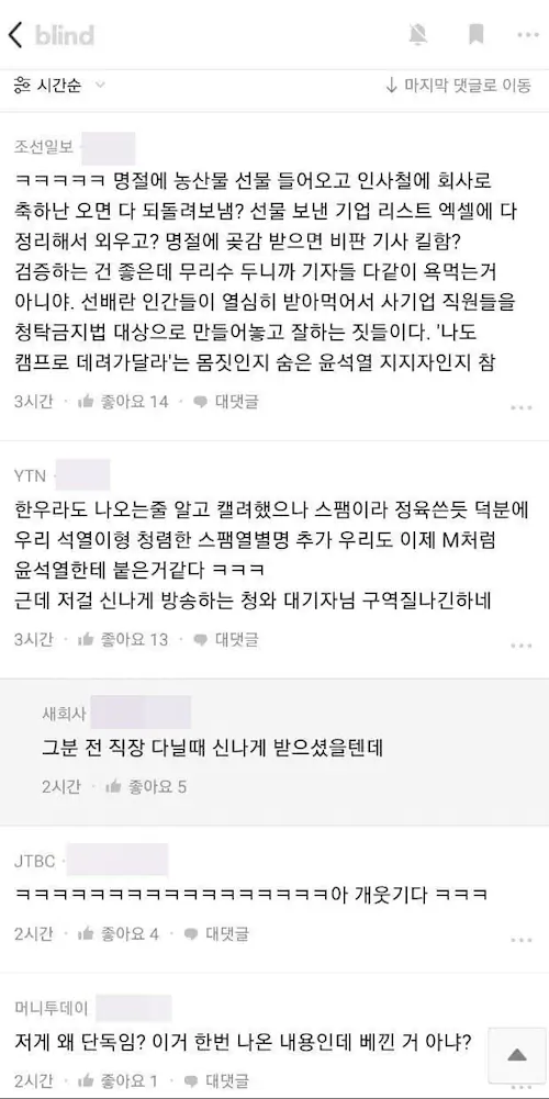 ㄹㅇ 선배란놈들은 다 받아처먹었는데 자기들은 김영란법이니 기자인식도 선배들이 ㅅ창내고 억울할듯