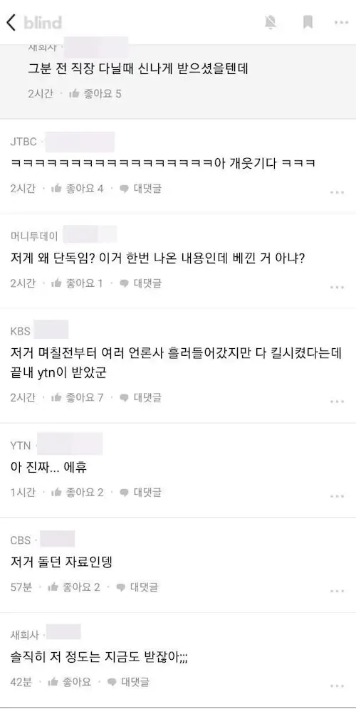 김건희 녹취록 공개후 기자들 반응 블라인드 KBS한테 개쳐맞네ㅋㅋㄱㅋㅋㅋ KBS한테 처맞는거 보니 MBC ㅈㄴ 짜증나겠네 ㅋㅋ 어용언론한테 욕먹는거보소 ㅋㅋㅋ mbc는 배카건도 그렇고 개병신집