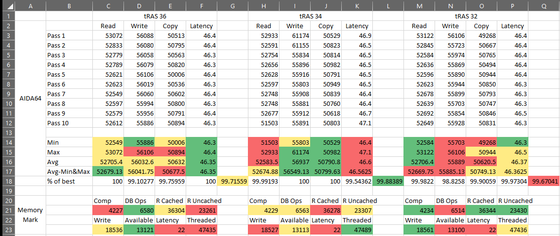 지금은 성능 차이가 무시할 만하기 때문에 tRAS=tCL+tRCD+2를 고수할 것이지만 개별 결과는 훨씬 더 일관성이 있었습니다.