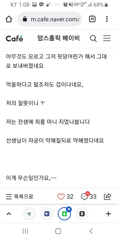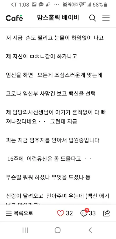 이거 말고 안정기에 유산한 후기글 있는데 그게 더 소름임 피부가 우글우글하고 이상했는데 뭐 잘못드신거 있냐고
