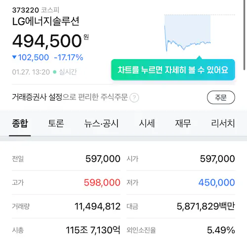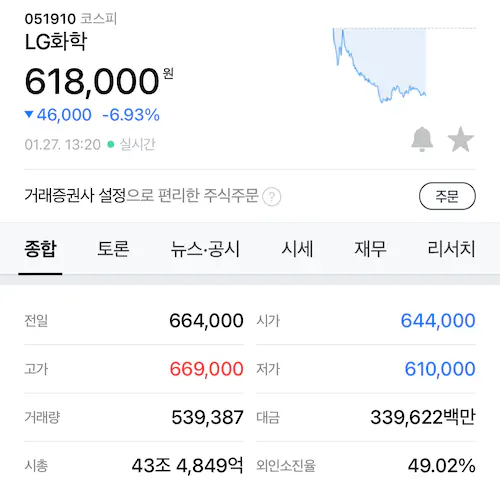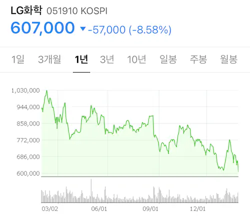 LG화학은 계속 떨어지면서 기존 주주들은 큰 피해를 입었어.