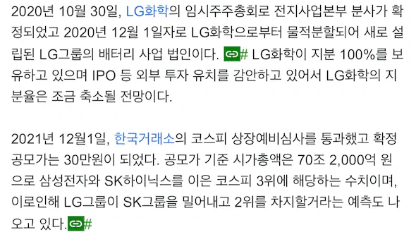 심지어는 바로 오늘, LG에너지솔루션이 LG화학으로부터 떼어져 분할상장을 했는데