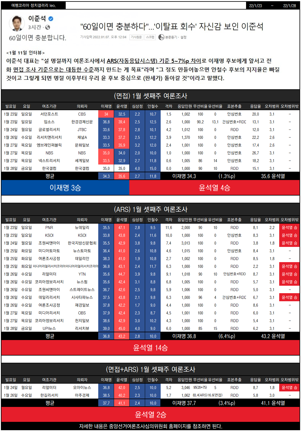 1/27 엠브레인-문화 윤석열 2.4% 승리