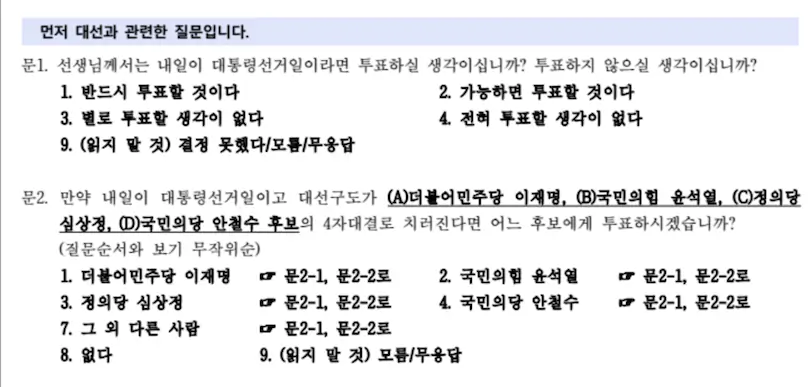 문재인을 지지하는지 먼저 물어본 면접조사는 전부 이재명이 이겼고