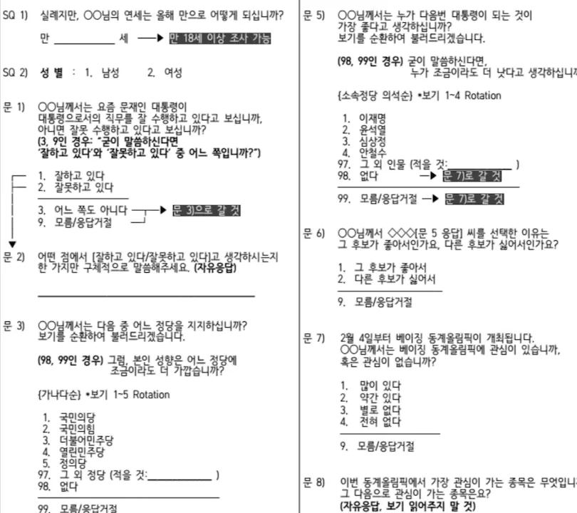 NBS, 갤럽, MBC(코리아리서치) 설문지 확인해봤는데,