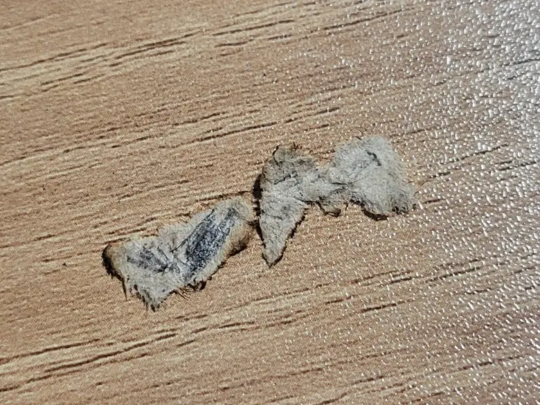 동사 정상제품과의 비교샷과 실험결과로 잘 말려서 샤프로 낙서해본 결과도 첨부합니다. 고기는 확실히 아닌것 같습니다.