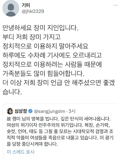 k검열 만들고, 미러링 옹호해서 국회의원 뱃지 달더니 이젠 죽은 사람 이용해서 물타기 시도까지하네
