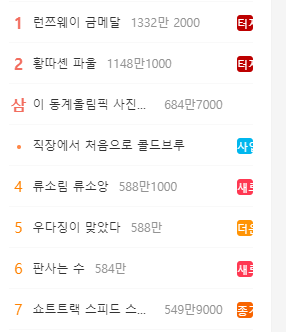황대현 반칙 실검 2위