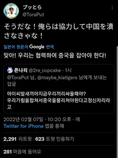 유튜브나 네이버에서 중국 감싸는 댓글 클릭해보면 중국언어로 된 이상한거 구독중이거나 토착왜구몰이 일베몰이 벌레몰이 펨코몰이 미친듯이 함