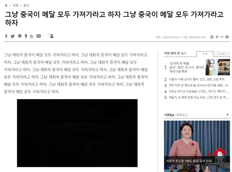 중국의 편파판정에 충격 받은 멘탈 나간 기자의 기사