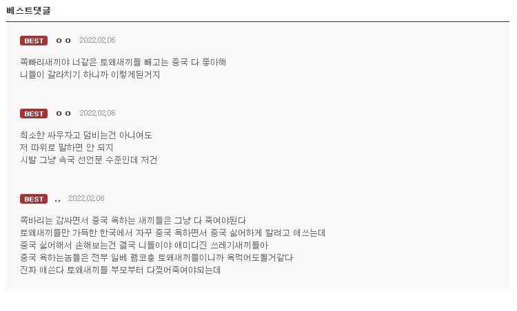 클리앙, 보배에 저런애들 한트럭임. 찢 빠는 애들 대부분이 조선족