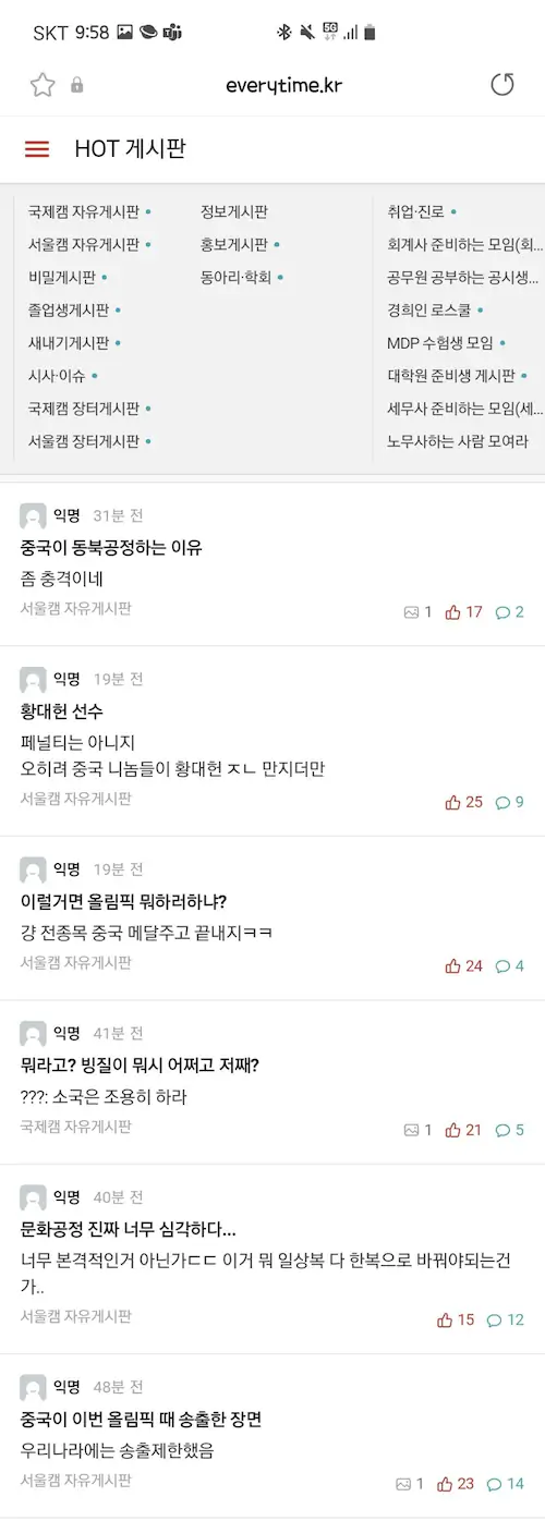 아주대 에타 베이징 올림픽 중국 편파 판정 반응