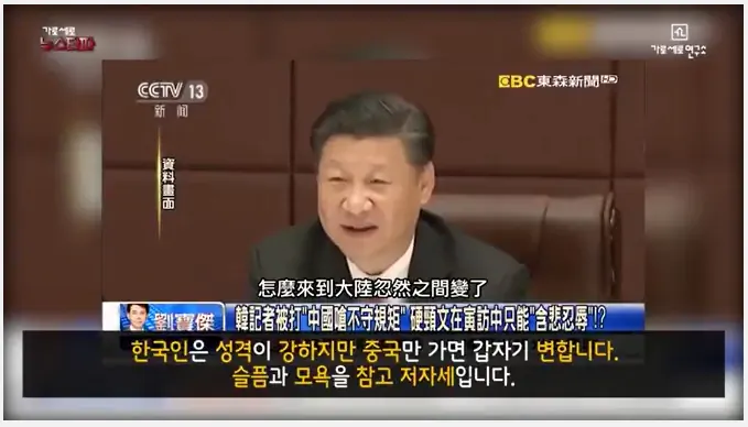 한국인은 성격이 강하지만 중국만 가면 갑자기 변합니다. 슬픔과 모욕을 참고 저자세입니다.