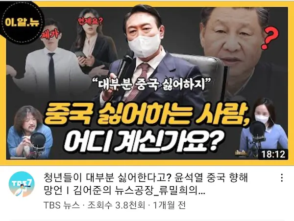 尹 "文정부 中편향 정책에도 국민·청년 대부분 중국 싫어해"