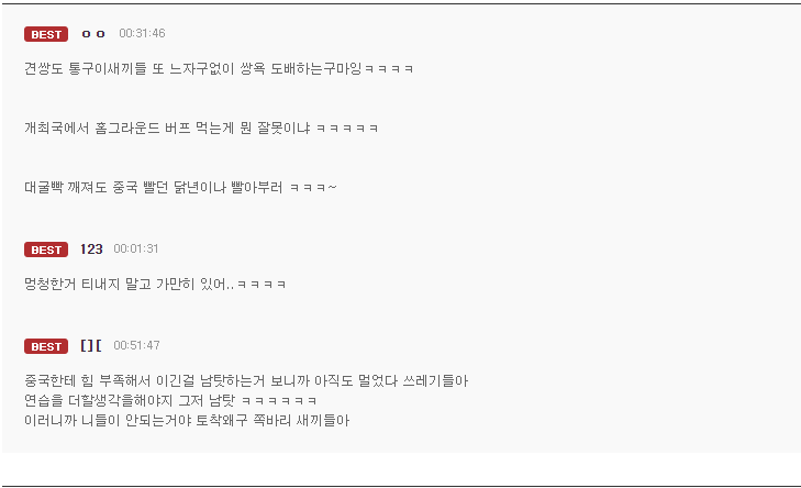 ㅋㅋ 첫 베댓은 위장 전라도 말투로 일부러 경상도 공격하면서 중국 까는 논점에서 벗어나 지역 감정으로 돌리려는 ㄹㅇ 전문 조선족 댓글러네