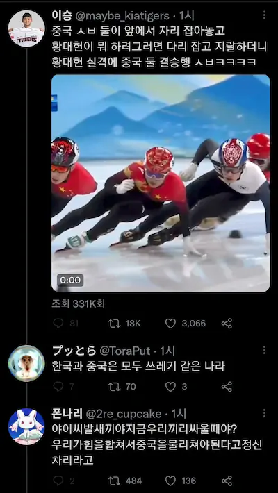 베이징 동계 올림픽 쇼트트랙 조선족 커뮤니티 반응