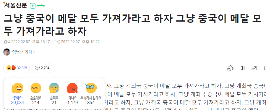 서울신문 기자 개추 30000개 받았네 ㅋㅋㅋㅋ