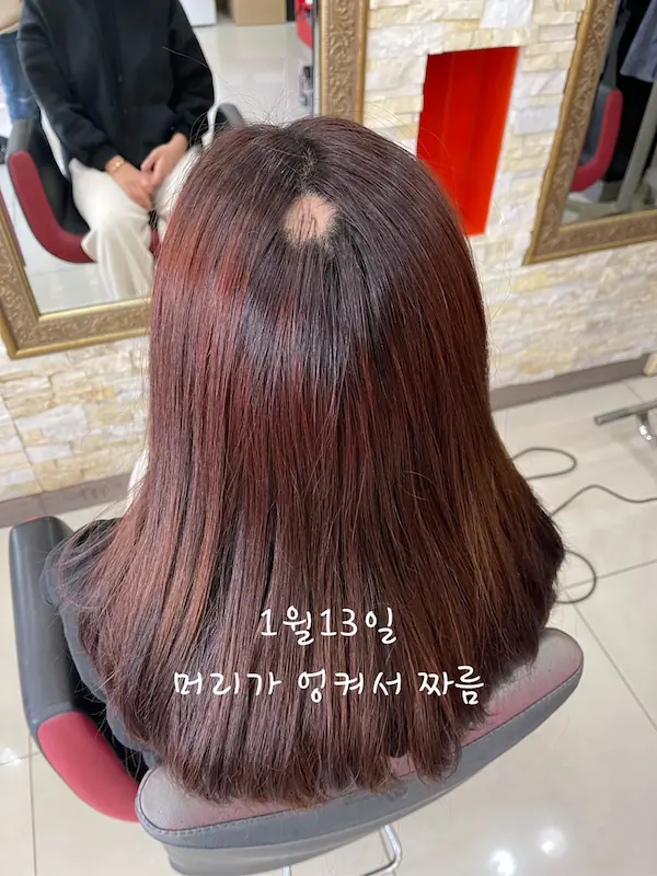 화이자 맞고 원형탈모 진행중 첫번째 사진 : 1차맞고 2주 뒤 발견(미용실가서 이발하다 발견) 2,3,4번째 사진 : 오늘 아침에 찍고 현재도 계속 진행중 1. 처음발견하고 집근처 피부과가서 희석 스테
