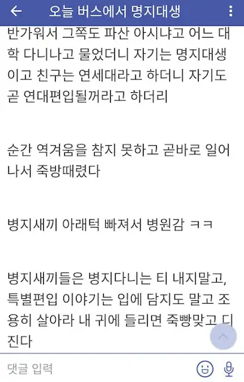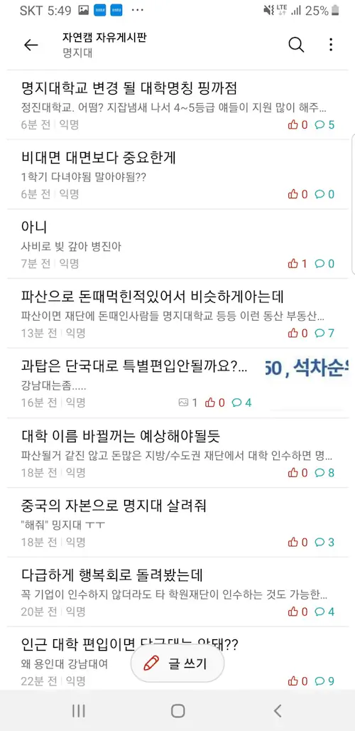 명지대 명지전문대 에타 반응